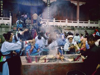 忙着上香的人们