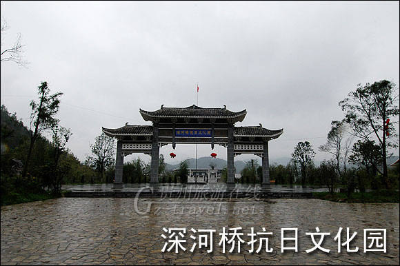 深河桥抗日文化园在贵州去往广西的210国道2552公里处。文化园附近的农家乐景点也各具特色,游客可品尝到原滋原味的独山盐酸菜等风味小吃,可聆听独山县花灯不同的韵味。