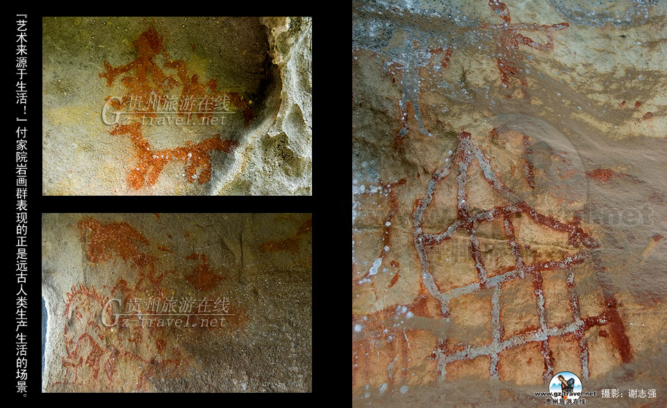 付家院岩画群位于长顺县威远镇付家院村龙家院,距县城12千米,长期以来鲜为人知。 岩画分别分布在同一座山上名为红洞与白洞的两个洞内,两洞相距100米左右。岩画绘制