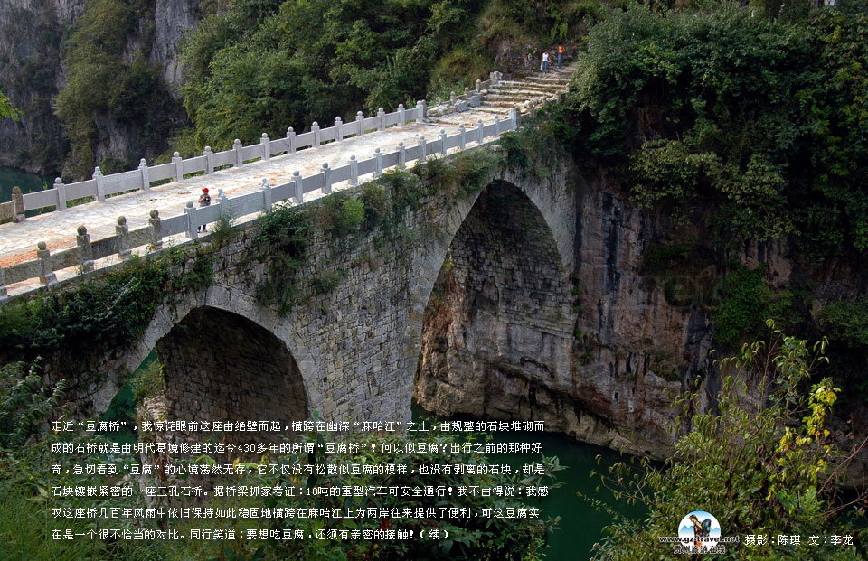 葛镜桥位于贵州福泉城东南麻哈江上,地处福泉洒金谷风景名胜去的下游,此地为古代京滇古驿道所必经之地。葛镜桥是明代平越(今:福泉)人 葛镜独资修建,时任云贵总督