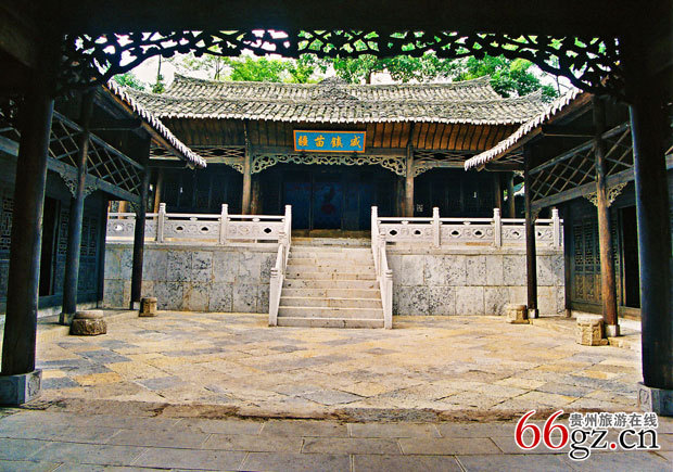 世界上最大的木结构戏楼——古邑双面大戏楼: 春日,一束阳光徐来,浮现出一座莲花式的“仙楼”。飞檐翘角的“仙楼”,叫古邑大戏楼。大戏楼,运用了古建“模数”结构法,在4650平方米的建筑面积上,用399棵两人合抱的大木,托起27个飞檐翘角和一棵刻有上千个古代戏曲人物和亭台楼阁的红木木雕横梁。“斧夺天工”地将戏楼,一分为二,为 “双面戏楼”, 又称“晴雨戏楼”。文武戏曲同楼分台演出。如飞的岁月,在这舞台上演出的傩戏、川剧、京戏、电影、电视剧,从历史穿越到现实。古邑双面戏楼是迄今世界上规模最大的木建古戏楼。戏楼的另一特色,用了大量的木雕、砖雕等工艺品,组合在屋脊和门窗上,显示出一幅幅热闹的市井风貌。有人作过计算,将楼内的花板一块一块连起,可从猴场延伸到遵义。古邑大戏楼,见证的正是中国革命史上的一台大戏。