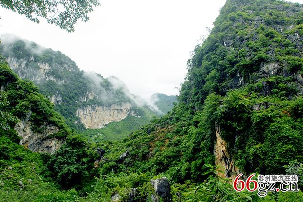 远眺贵州贞丰沙坪乡红岩脚岩画山崖