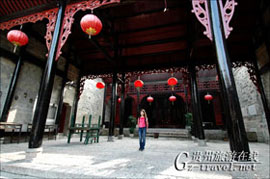 石阡“万寿宫”糸江西客商在省外修建的一种公共建筑物,“万寿宫”又叫江西会馆或豫章会馆,位于汤山镇城北路。石阡万寿宫始建于明万历十六年(公元1588年),乾隆三十二年(1767年)改修。该宫始建年代早,规模较大,装修工艺较精。尤其是木雕戏台人物栩栩如生。