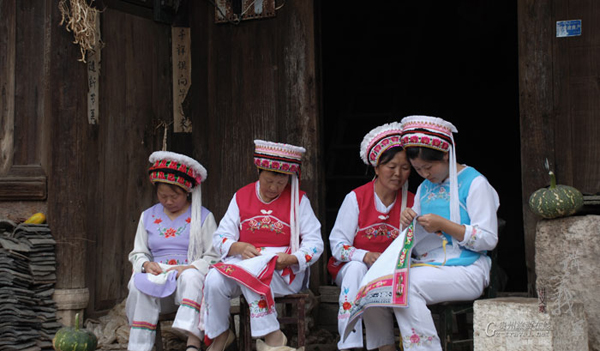 白族妇女在绣花