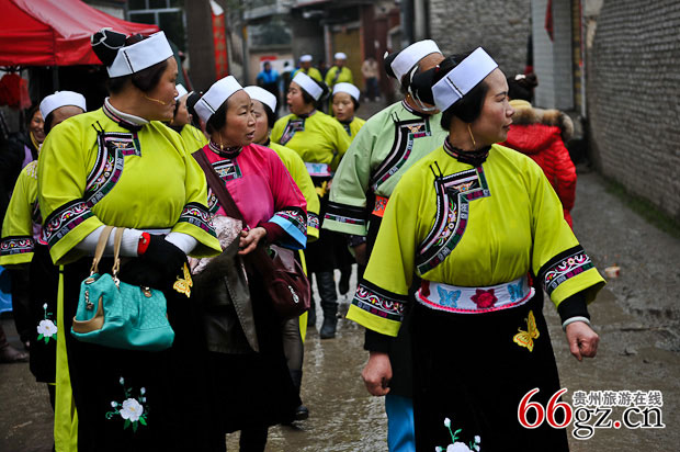 屯堡人服饰的特点,主要表现在妇女的衣着和装扮上。在中所村,屯堡妇女始终保持大袖长袍尖头鞋等明代遗风。