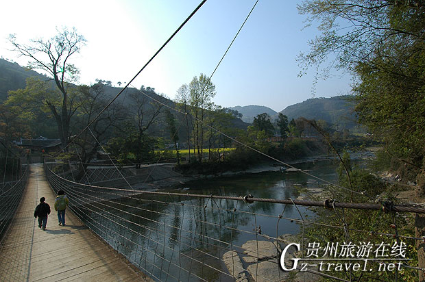 相传,三国诸葛武侯南征时曾于此作战,所以至今仍有诸葛寨等地名,当地居民也在修建房屋时挖出过兵器等物件。如今,一片金戈铁马换做漫山桃红和遍野的金黄,曾经河上架起的吊索桥,如今也成了这里的一道独特的风景线。