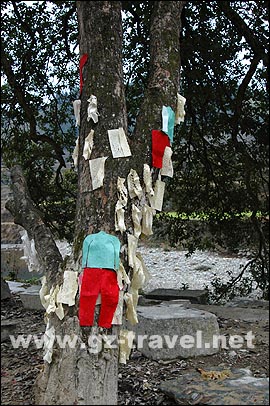 树上贴满“钱纸”保佑孩子平安