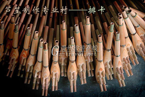 雷山县丹江镇排卡村是国内享有盛誉的芦笙制作村。它坐落在县城以南3公里的丹江河畔,海拔833米,冬无严寒,夏无酷暑,气候宜人。寨子建在依山傍水的山丘上,吊脚木楼掩映在绿竹青松翠杉之中,清撤见底的巴拉河缓缓东去,雷(山)榕(江)公路绕寨南去。排卡桥横卧丹江之上,将寨子和公路连接起来,交通便利。苗族山民世代过着农耕生活,忠厚朴实,热忱好客。民族风情浓郁,古规古礼淳朴。 排卡的芦笙制作久负盛名。全村80户有12户人家从事芦笙制作,世代传承,故有“芦笙村”的美称。排卡芦笙因其规格齐全,做工精湛,形体光滑,玲珑精巧,颜色素雅,音质圆润,深受顾客的喜爱。自8o年代以来,已生产上万支,远销北京、上海、广州、四川、云南等地。雷山县文工队赴西欧荷兰、比利时等国访问演出之际,它也曾被作为