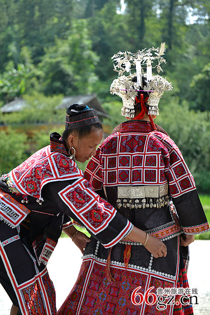 红绣纹样的内容有一个普遍而显著的特征,即主体纹样——“天鹅”的造型源于当地一段美妙的苗族神话传说:今贵州剑河县观么乡巫包(苗语,意为“清泉流出的地方”)村所座落的山间盆地,原是一湾散落的池塘,泉水漾漾,荟蕞成湖。一个落霞余晖的傍晚,一群仙鹅自天而降,落入湖中嬉戏,天色渐晚,众鹅飞离,唯最小一只因眷恋这人间仙境,遂悄悄藏在泉水源头,待一苗族小伙前去挑水,即化成一位美丽的苗族姑娘从泉眼中走出来,并与其私定终身。当地人称她为“仰阿莎”(意为清泉女神)。仰阿莎心灵手巧,教会了当地苗族女性这绝美的刺绣。后人为纪念她,即在自己服饰最显著位置刺上仙鹅图案。