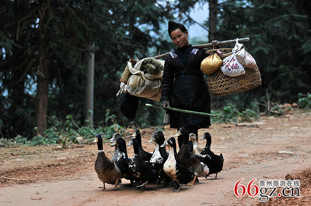 大歹苗族居住在高山上,每天要把鸭子赶去山下的稻田中放养