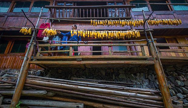 村民采摘生长在森林里的金钱柳来泡水喝 摄影:黄璐
