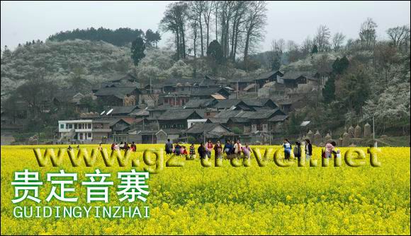 音寨是有着600多年历史的布依族村寨,是“全国农业旅游观光示范点”,是黔中最美好的田园民族自然景观之一,已被列入我省13个重点保护民族村之一。 贵定音寨平均海拔1000米,年平均气温16°c,属中亚热带季风气候,四季温和,雨量充沛,日照较好,冬无严寒,夏无酷暑,主要气候特点:季节性变化较大,四季气候温和。 林木植被保存完好,寨头银杏、古柏高大苍翠,寨后观音山林木郁郁葱葱。流经音寨的瓮城河河面宽阔,水流舒缓,碧波澄澈,水质良好,水流充沛。瓮城河上的鸳鸯岛小巧玲珑,岛上现有参天大树几十棵,瓮城河水绕岛而过,是一个 “天然游泳池”,河水由浅入深,清澈见底,是夏季避暑胜地。因其堆锦集秀、风光秀丽,生态环境优美所以又称之为“小花溪”。1998年电视剧《上门女婿》就选在这里作为拍摄地。 音寨布依民居建筑充分结合山地条件,适应山地坡度、地貌特点来组织空间,山地建筑特征明显。简洁朴素,砖木结构、青瓦屋面、青砖墙,多为三开间结构,设檐廊,由堂屋及两侧正屋构成,堂屋为一层,两侧正屋多为两层。屋内卧室、厨房、火炕设在中堂的两端或后半部,中堂设神龛,神龛下摆设一张方桌,节日庆典作陈设祭品供奉祖先。 山墙具体承重及防火功能,山花为吉祥图案。布依族村民极重视坐山朝向、开门放水,对坐山朝向,整体居住环境错落有致,和谐美观。一般装饰部位为门、窗、屋檐及门簪,大门门簪多为八卦乾坤图案,木雕分置左右,设腰门。腿子墙粉底花饰及山墙花饰为音寨布依族民居所特有的寓意吉祥的民居建筑符号。 音寨布依族民居背靠观音山,面向瓮城河,观音山郁郁葱葱,瓮城河清澈见底,传统民居古朴自然,保存完好,其民居建筑风格、布局与自然环境极其融洽,充分体现了和谐的人与环境的关系。 家家户户都在自己的房前屋后山坡上都种植李树,每至春分,万亩油菜花和千顷雪李花构织成了“金海雪山”之奇景。 音寨布依族服饰特点以女性为主,色彩、款式根据性别、年龄不同,各有特点。青少年女性喜穿土花布,中年以上的女生喜欢深蓝色或青色,圆领短衫、长裤,头缠青色头巾,脚穿绣花鞋,胸挂银链绣花围腰。 音寨布依族民间文学主要以诗歌为主,在内容上可分为叙事歌、爱情歌、酒歌、山歌等,演唱方式有大调小调之分,大调歌声高亢悠扬,小调歌声清新悦耳,讲究对仗和押韵。一般在婚嫁、搬迁等喜庆宴会上喝酒时唱酒歌,对不出或不会唱者就罚酒;在丧葬时唱叙事歌,歌颂人的一生;在接待客人、表演时唱山歌,多用布依族语言演唱。 | |