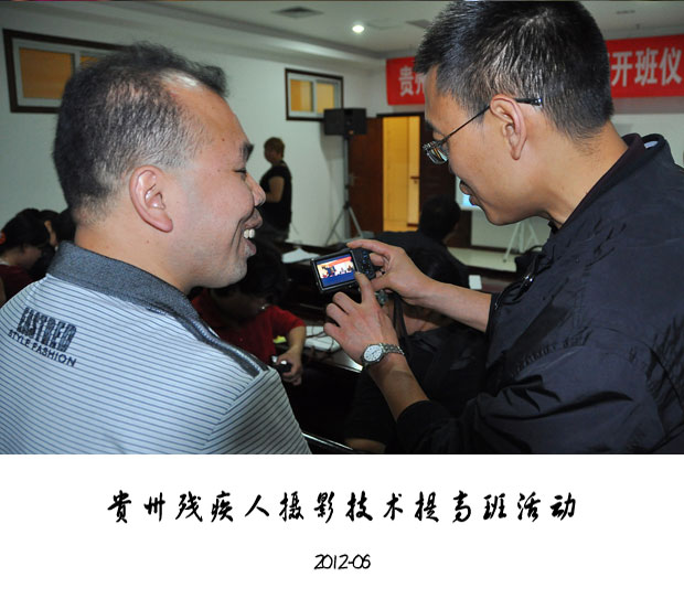 本次活动的学员由贵州省9个地州市的30余位残疾人摄影爱好者组成,会上贵州省青年摄影家协会主席张驰热情的与肢残学员潘怒江交谈,潘怒江现场为大家表演了书法,主席鼓励他勇往直前走下去,闯出残疾人自己的一番天地。