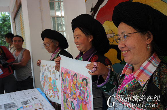水城陡箐的歪梳苗为大家展示她们亲手绘制的农民画