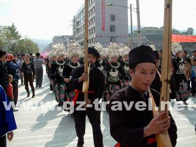 苗年是雷山苗族最重要的祭祀性节日,县内几乎所有苗寨都过,都要在节日期间举行斗牛、赛马、斗鸟、跳芦笙、踩鼓等传统娱乐活动和赛球、田径等现代竞技体育项目。苗年是最集中地展示苗族服饰、银饰、工艺美术等有形文化的节日,时间大都在农历十月。苗族认为,一年只有热季和冷季两个季节,热季和冷季交替的农历十月,既是热季的结束,又是冷季的开始,同时也是旧年结束,新年的开始。苗年有大年、小年和尾巴年之分,小年仅打点糯米粑祭祖,尾巴年也仅象征性地过,唯大年最为热闹,所有的传统活动和竞技体育项目亦在“大年”期间举行。过年之前,已出嫁的姑娘要接回家共度佳节,家家户户要酿制米酒、打年粑、磨豆腐、杀年猪、备新衣过年。大年当天(如汉族除夕),家家都要以猪头、猪心、腰子、鸡、鱼、酒和糯米粑祀祖先神灵,祭品中,其他可以缺,但鱼不能缺,必须用两条鱼祭祖,表示不忘祖先东方海边故土。苗年是苗族最重要的节日之一,因此,集会也最热闹。在这年节的三五天当中,各个村寨都或多或少举行各种娱乐活动。