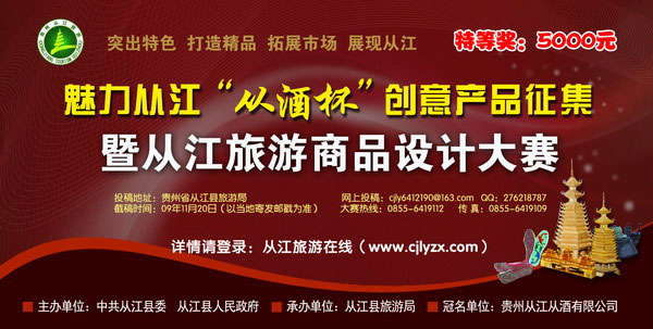 为进一步提升从江县旅游商品的创新和设计水平,促进产业结构调整,扩大旅游购物市场,推出具有浓郁从江地域特色、民族特色和具有代表性的旅游商品品牌、名品,特举办此次活动。现就有关事项通知如下: