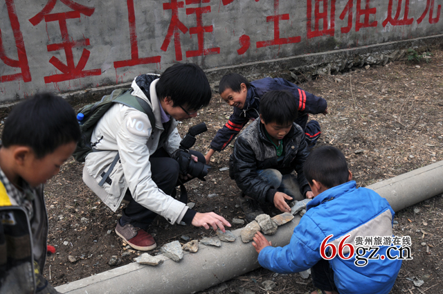 达人庾健明和高华当地的小孩玩得很开心