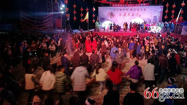 篝火晚会,一片沸腾,熊熊大火,照亮夜空,不少歌手从贵阳慕名而来,将整场晚会推向高潮。傅氏宗亲与傅友德大将军官兵后代、游客近3000人手拉手围成一圈又一圈,踏着音乐节奏,尽情地跳着、唱着、欢呼着,激情地宣泄着对生命的高昂激情,对新的一年美好的愿望,也代表着傅氏宗亲与傅家寨将军官兵后代团结一心,荣辱与共。一位村民说,这样的场面在傅家寨从未有过,如果有,那一定就在600年前傅将军“调北征南”凯旋归来之时。