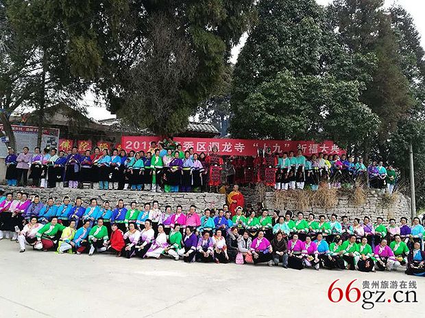 迴龙寺据传为征南时期傅友德妇人出资所建。正月初九上午举行“开库”仪式后,由祖勋法师6人主持祈福法会,包括上供、绕佛、回向,以及分别向傅家寨、高福、革堕三寨“洒净”消灾祈福。来自周边十几个村的屯堡信女共赴胜会,祈福这片土地风调雨顺,家庭幸福平安,并在佛主静处的胜地,寻找心灵的归宿、生命的真意,彻底忘记600多年先祖们的长途跋涉与站在伏虎山古城墙上苦等征南夫君回归的场景,让心灵归于平和与宁静。三村7组老佛头到各自组的“修福”人家逗米、菜油、青菜、洋芋、辣椒等,取“百家米做百家饭”,为来朝山拜佛的善男信女提供斋饭。