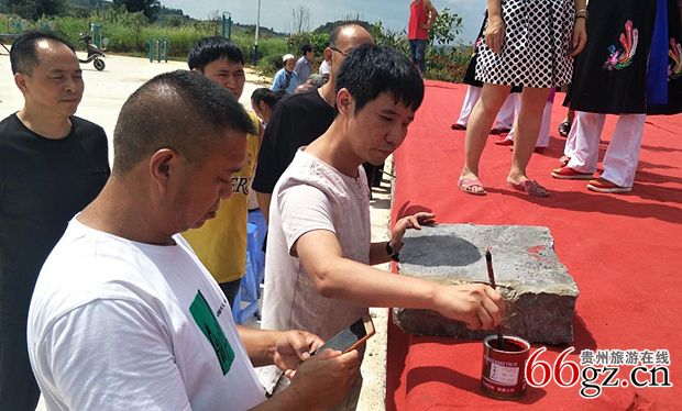 蓝天白云寨旗飘扬,炮声起伏云霄绽放,上午的奠基仪式上,傅氏宗亲代表挥笔书写奠基石。点燃蜡烛,先生口中说道:“左点左发,右点右发,今天吉日吉时给傅将军雕像奠基,保佑全体傅氏宗亲、傅家寨村民、周边屯堡村寨人丁兴旺、后裔繁昌、遵纪守法、大富大贵,成为国家栋梁......”。