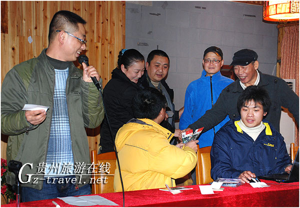 知名作家、摄影师欧阳昌佩不仅为年会带来几位漂亮模特儿mm,还把他的著作《烟雨侗乡》带到会场,为抽到奖品的摄友现场签字留念。