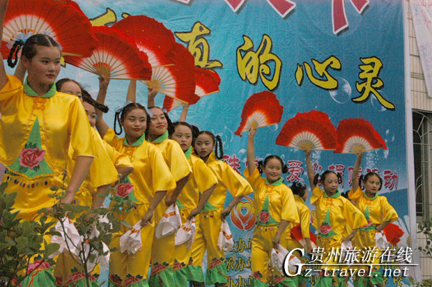 这个舞蹈叫《赶集》,孩子们跳得很开心,本来当天温度很低,不想让孩子们穿着单薄的衣服表演,主办方想把表演取消掉,可是想到这也是孩子们的一个梦,毕竟训练了一个多月的时间。在台上,他们和正常人没有任何区别,但有一点不同的是,你会看到他们的目光并不是面向观众,而是盯向他们的老师,因为在他们的世界里,没有声音,唯一可以与这个世界交流的,是他们那一双双可爱的眼睛,所有,当你看到老师也在台下“跳舞”时,那只是她在为孩子们配上看得见的音乐。