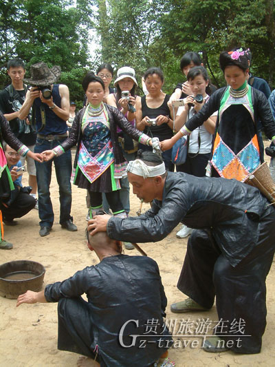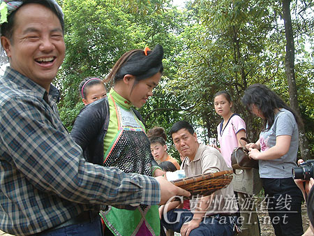 参加订亲仪式的“新郎”请游客吃粽子时开心的笑了