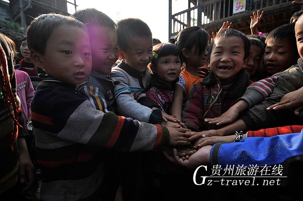 “大手牵小手”,一只大手拖住十几双小手,归奶小学的小朋友们用这种方式在感谢捐赠者