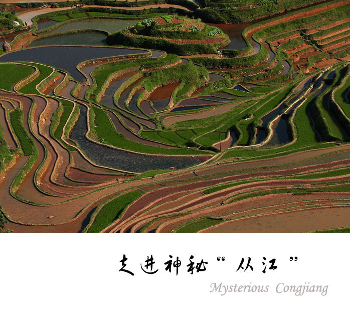 每年的四、五月是梯田注水的季节,注水后的梯田会闪现出银白色的光芒,更凸显出加鸠梯田婀娜曲折的轮廓。