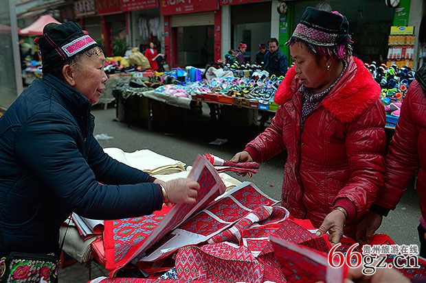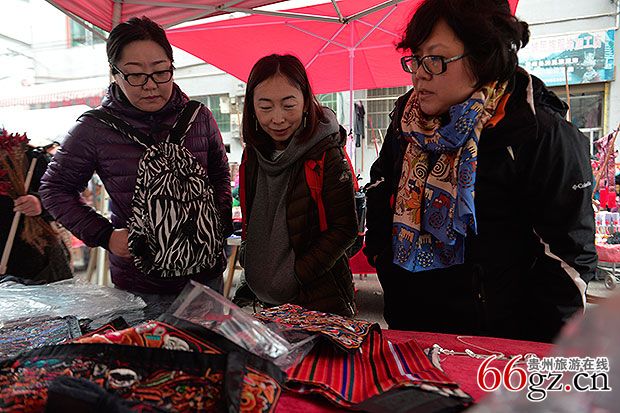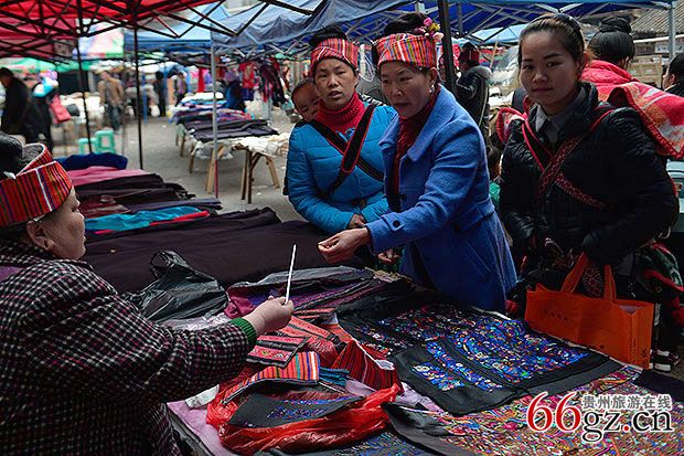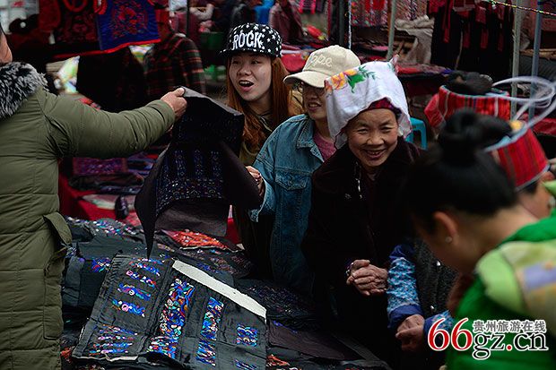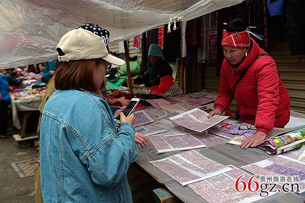 在剑河县的第二天,正逢剑河县城赶集。师生一早来到集市上,体验了一把“赶乡场”的滋味。在集市上,师生们不仅能在布料市场收集一些有关剑河苗族刺绣方面的资料;还能实地的感受剑河的风土人情。
