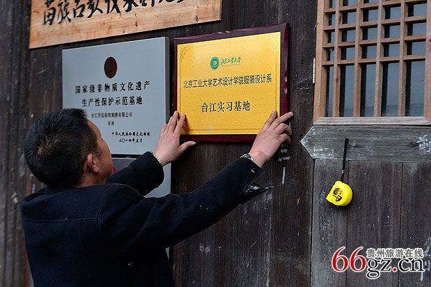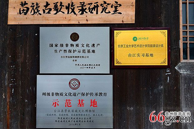 在台江县的第二天,北工大艺术设计学院老师代表在台江县芳佤博物馆举行授牌仪式,正式授予台江县为“北京工业大学艺术设计学院实习基地”。授牌仪式结束,采风团一行分别参观了芳佤博物馆、银匠村塘坝、刺绣村八梗。