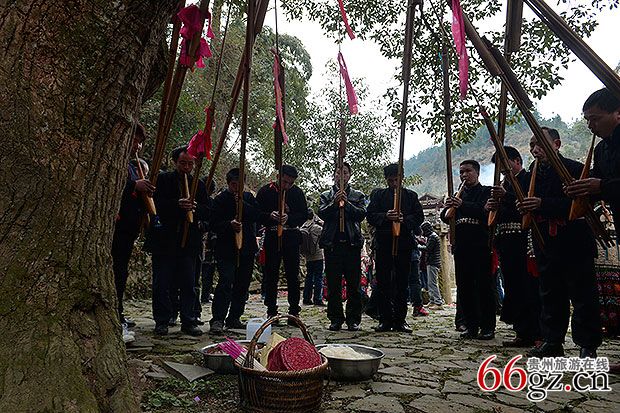 2月27日,农历二月二,台江县红阳、反排等村寨共同欢庆一年一度的传统“祭桥节”,苗族村民们在自己的寨子欢聚一堂,举行祭桥、踩芦笙等活动,喜迎佳节。