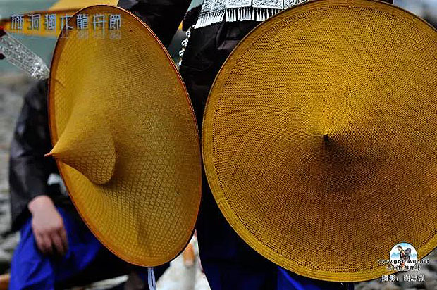 传统的装束与墨镜、斗笠既冲突又和谐。