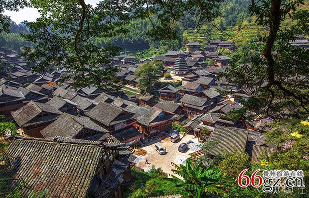 村寨四周古木葱茏,古楠木树达400多株,体现了侗寨人与自然相和谐的“老人护村,古木佑寨”的传统观念。