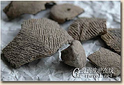 我们正向渣口洞走进 渣口洞遗址中发现的陶片