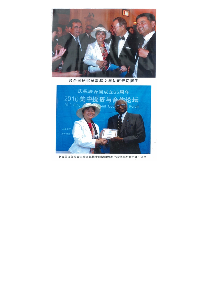 沈丽获“联合国友好使者”证书
