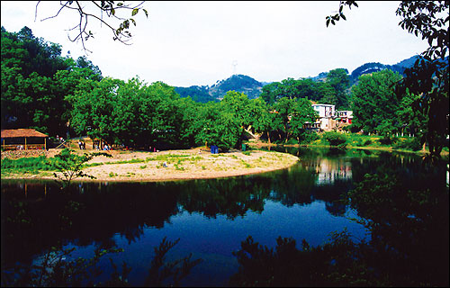 依山傍水的布依山寨、错落有致,田畴畦地、壮郎锄禾,俏姑浣纱。休闲茶庄、歌声荡漾,沙滩草坪、游人倘佯,碧波绿水,舒肢展体。饿了,在岸边的农家饭庄,尝一尝苗二河水孕育的特产“角角鱼”等农家特色小菜;累了,在沙滩上小憩,枕着潺潺的流水声,恍然进入世外桃源。