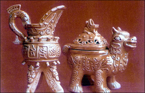 牙舟古陶的价值,在于它既承载了陶艺历史的演变,又体现了在流变过程中对不同地域文化的融合,实现了实用性与工艺性的完美结合。长期以来,牙舟陶器的制作始终与当地民间不同民族日常生活用品息息相关,举凡壶、盘、杯、碗、碟、钵、勺等餐具应有尽有,祭祀的器皿、老人的烟具、小孩的玩具也是异彩纷呈。制作过程中,艺人们有意识地将一些有着深厚中原文化内涵的图案与符号,如龙、凤、十二生肖、甲骨文等寄寓其中,创造性地将一些久远的器具如樽、觥等“复古”,使牙舟陶独具一种浓郁的文物神韵。