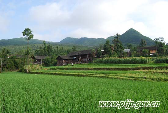 凉伞石风景优美。寨子四周翠竹掩映,绿树成荫,雀鸟啁啾;绿树之外,一块块水田好似一块块明镜,倒影天空、白云、青山。寨后是连片的万亩草场,一直延伸到山峰顶上。“山高水高”,草场里到处是淙淙溪流,清凉、刺骨。这里是个放牧的好地方。