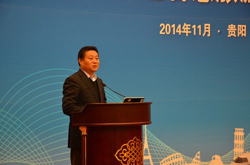 (贵州省旅游局局长傅迎春在会上致辞)